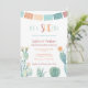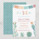 She-Esta Baby Girl Shower invitation design in more Autumnal tones of juniper, peach and cranberry, with watercolor cacti / prickly pear for a fun Mexican-themed Baby Shower or Baby Sprinkle.