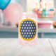 Synura are a single-celled, microscopic algae, often golden to golden-brown in colour, that tend to form spherical colonies in freshwater ponds, lakes, and slow moving rivers or streams. This design showcases colonies of these pretty, and sometimes smelly, little plankton as a polka dot pattern on a muted blue background. A golden border, shaped like the outline of the colonies masks the pattern to create a whimsical final touch. This glassware is also available in rocks and stemless wineglass styles.