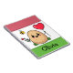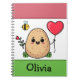 Cute, kawaii potato holding a red love heart balloon in one hand and a heart flower in the other, a tiny yellow and black bee is flying above it's head. Below is a template to add your name or other message to personalize.