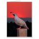 When a quail covey is foraging one is often perched on a high place keeping watch for danger. This quail was doing sentinel duty as the covey foraged nearby. Quail and sunset photographed separately in Siskiyou County, CA. Matching postage stamps available on this site.