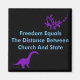 When Church and State bed down together, our freedom lessens. A dinosaur and flower of knowledge are separated by text: "Freedom equals the distance between church and state."