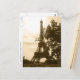 This sepia-toned image of the Eiffel Tower in Paris, France has an antique or vintage vibe.