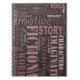 The front cover includes terms that are commonly used in fiction writing. They are arranged into a word art design and feature various sepia tones.