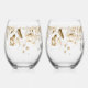 Sepia Floral Drop l Baby Shower Mum & Dad-to-Be Stemless Wine Glass