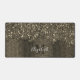 Sepia gold faux sparkles rustic wood Monogram Desk Mat