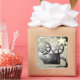 Stylish movie related sticker in shades of grey and sepia depicting a movie camera, film, clapperboard and stars.