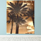 A striking brown gold sepia artwork canvas of sky tall Palm Trees.