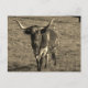 Sepia Tone Brown and White Longhorn Bull Postcard