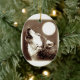 Sepia Wolf & Moon Ceramic Tree Decoration
