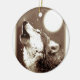 Sepia Wolf & Moon Ceramic Tree Decoration