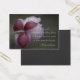 Practice some wedding kindness when you arrange this pretty donation card at your guests' marriage reception place setting. The elegant September Charm Wedding Charity Favour Card states that in lieu of a traditional party favour, a donation has been made in their name to charity. Customise the card by adding the name of your favourite charity and the personal names of the bride and groom. This classy custom floral photograph of a purple and pink September Charm flower blossom with tiny water droplets.