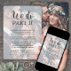 Invite family and friends to witness you say "I do" again with an elegant modern 2 photo text overlay sequel wedding invitation. All wording is simple to personalise including quote that reads "we do part II." Customise it for any type of marriage celebration, such as a vow renewal ceremony, 1st anniversary reception, post elopement party, cocktail hour or dinner party. Personalise with the details of your choice, including marriage date, rsvp, dress code, website, etc. (IMAGE PLACEMENT TIP: An easy way to centre a photo exactly how you want is to crop it before uploading to the Zazzle website.) The modern minimalist black and white design features two pictures of the newlywed couple, trendy handwritten script calligraphy, and chic typewriter style typography. Whether or not you eloped due to the covid pandemic or downsized to a smaller, more intimate minimony or micro wedding, the happily ever after party can still get started. Congratulations to the bride and groom!