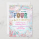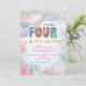 sequin glitter Four Shellebarate Girl birthday inv Invitation