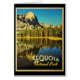This beautiful lake scene in the Sequoia National Park in California boasts still water, forest and mountains with a wide sky behind and a clear reflection.