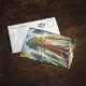 This postcard features a watercolor portrait of General Sherman in Sequoia National Park, California
