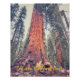 A towering sequoia tree dominates the frame, its massive trunk reaching towards a cloudy sky. The bark is a rich reddish-brown, textured with deep grooves and knots. Sunlight filters through the dense canopy of evergreen branches, casting a warm glow on the forest floor. The tree stands tall and proud, a testament to the enduring power of nature