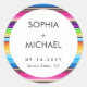A set of round and colourful serape pattern wedding stickers in an open and minimal style reminiscent of the colours of spring.