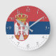 The clock did not take as long to arrive as I thought it might and was extremely well packaged. I didn't do the measurements so I didn't realize it is a little smaller than the average clock but that does not matter (just make sure you check if that's important to you).It is really nifty! It seems very solid and well made not flimsy at all. It has been going well and has kept good time in its few weeks on my wall. Nice product. Gets noticed too! Nicer in real life than the picture but true to the picture