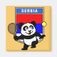 This adorable little panda loves to get out on the court and hits some balls. Panda plays in front of a large flag of Serbia. This is a great design for anyone who loves to play tennis, watch tennis or just loves cute pandas.