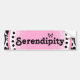 The word "serendipity" bordered in black and white and on a pink background with a black and white butterfly.