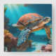 Serene 3D Sea Turtle in Ocean Tranquil Marine Life Square Wall Clock