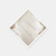 This wedding napkin design features a minimalist and elegant layout with a soft, neutral colour palette of beige and cream. The abstract watercolor background creates a dreamy, ethereal atmosphere, while the clean, sans-serif typography adds sophistication. Perfect for formal occasions like weddings or engagements, this design conveys a serene and romantic mood, making it ideal for celebrating love and commitment.