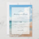 This wedding invitation features a serene beach scene with gentle waves and fluffy clouds, creating a tranquil and inviting atmosphere. The minimalist design uses soft blues, whites, and warm beiges to evoke a dreamy, ethereal quality. Elegant typography highlights the couple's names and event details, ensuring clarity and focus on the celebration. Perfect for couples seeking a calm yet joyful vibe, this invitation is ideal for a seaside or summer-themed wedding.