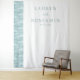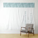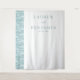This elegant wedding backdrop features a minimalist design with a clean, modern aesthetic. The left side showcases an abstract wave pattern in soft blue-green hues, while the right side remains white for a balanced look. The typography is central, using a classic serif font for the names and a cursive script for "and," creating a sophisticated yet romantic feel. Perfect for weddings or engagement announcements, this design exudes tranquillity and anticipation with its serene colour palette and simple composition.