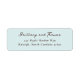 These return address labels feature a simple, elegant layout with centred text on a light blue background. The design uses a sophisticated script-like font for the names and a clean serif type for the address, creating a refined and personalised look. The minimalistic composition emphasizes readability and sophistication, making them perfect for formal occasions or everyday mailings. The calming colour palette and balanced spacing convey a serene and polished aesthetic, ideal for those who appreciate understated elegance in their stationery.