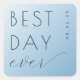 This wedding sticker features a minimalist design with a calming blue gradient background, transitioning from light to slightly darker shades. The layout is centred and balanced, utilising ample negative space around the text elements for a clean look. Bold sans-serif typography spells out "BEST DAY" while an elegant cursive script adds a personal touch with the word "ever." The overall aesthetic conveys a mood of celebration and optimism, perfect for marking special occasions like weddings.