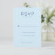 This wedding RSVP card features a minimalist design with a serene light blue background and dark navy text, creating an elegant and calming atmosphere. The layout is clean and modern, with centered typography that guides the recipient through personalized fields for name, attendance choice, and number attending. Its simple yet sophisticated style makes it perfect for formal events, conveying a professional yet approachable tone. Ideal for weddings or upscale gatherings, this card ensures clarity and ease of use while maintaining a chic aesthetic.