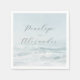 This wedding napkin features a serene ocean scene with gentle waves and a soft blue and white colour palette, creating a calming atmosphere. The design includes elegant script typography for the names, paired with a minimalist sans-serif font for additional text, all centred to maintain balance. The realistic depiction of the seascape enhances the tranquil mood, making it perfect for celebrating significant life events. Ideal for weddings, this napkin combines nature's beauty with sophisticated style, offering an inviting and memorable touch to your special day.