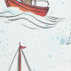 Watercolor pattern in soft navy blue, red and yellow featuring sailboats, most calming and tranquil design for for coastal decor in the kid's room, bedroom, bathroom, beach house, holiday home..