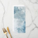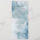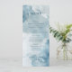 This wedding menu features a serene and sophisticated design with a watercolor background in shades of blue and white, creating an ethereal cloud-like effect. The layout is vertical and balanced, with elegant serif fonts for the title and section headings, while clean sans-serif fonts list the menu items. Customisable text at the bottom allows for personalisation, making it perfect for adding names and dates. The minimalistic yet refined style emphasizes clarity and readability, ideal for a formal event.