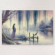 Serene Fantasy Lake with Willow and Heron Jigsaw Puzzle