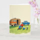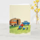 Designed with a calm outdoor scene, the illustration shows a single adult relaxing in a folding chair on rich green grass, his easy posture suggesting a quiet, companionable day 👨. To the left sits a rounded travel trailer in warm earthy shades, wrapped with orange and yellow stripes that feel sunlit and welcoming. A thin curl of pale smoke rises from a small roof vent, hinting at something cozy happening inside. In the distance, a classic blue utility vehicle waits nearby 🚗, like a trusted partner for the trip. A small charcoal grill close to the chair gives off gentle white smoke, adding a touch of shared-meal anticipation to the moment. A bright blue insulated container sits nearby, as if someone thoughtfully packed drinks and snacks for later. There is no text on the front, leaving the wide cream background open and airy around the scene. The grass is shown with textured strokes, and the trailer’s stripes remain the strongest color accents against the light backdrop.