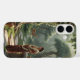 Bring poetic beauty to your everyday essentials with this serene iPhone case design inspired by South Indian forest landscapes and timeless village traditions. The artwork features flowering jasmine vines wrapped around majestic banyan trees, quiet forest paths with river stones, and gentle deer grazing beneath soft dappled sunlight. A graceful tribal woman in traditional attire stands near a carved stone well, holding a fragrant garland — a symbol of love’s patience and peace.