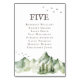 This table number card is elegant and very useful helping guests know where to sit. Design of watercolor landscape painting of trees, flying birds and montains in the background. Calm and serene nature illustration with pine trees and silhuettes of flying birds. Add your guests' names to each card to create a unique table number display - whether strung as a banner or placed in individual card holders on each table. Please note: cards come without holes or punches; images shown are for inspiration only.