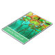 From an original watercolor painting of a pond with lilypads. Serene and green calming art. Fine art painting with modern green colours.