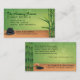 A tranquil scene is the focus of this business card geared towards day spas, salons, massage therapists, life coaches, yoga instructors or anyone working in the spa or aesthetics industry. Bamboo stalks make up the right edge of the card, printing in front of a wooden surface holding a stack of massage rocks. A soothing green background with a watermark of bamboo leaves completes the image. Add extra information on the reverse including appointment information. Available with matching products.