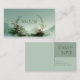 Define your brand with unmatched tranquility and ethereal beauty using this captivating business card. The design centers on a breathtaking Asian-inspired waterscape, where layered, misty mountains fade into a hazy, pale sage green sky. The foreground is dominated by a still, peaceful reflective lake or body of water. The key feature is a graceful, arch-shaped frame of vines and pale pink flowers rising from the water, creating a natural, elegant boundary for your text. A subtle, thin white arc traces the top of the design. This artwork beautifully captures the quiet solitude and harmony of a hidden Zen garden, resulting in a unique and sophisticated brand statement that conveys peace and natural elegance. This business card is ideally suited for a spiritual advisor or wellness coach emphasizing calm and nature, a boutique travel agency promoting scenic mountain or Asian-inspired retreats, or a fine art print seller specializing in serene, atmospheric works. It would also perfectly suit a landscape architect whose focus is on peaceful, artistic garden designs, or a tea room proprietor looking to convey a refined, peaceful experience.