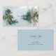 Find your tranquil escape with this serene and ethereal business card design. Featuring a beautiful painterly landscape, this card depicts a calm, misty river surrounded by lush, tree-covered banks that softly dissolve into the fog. Delicate botanical arrangements of ferns and wildflowers in muted shades of green and teal are sprinkled with elegant gold flecks, adding a touch of magic. The atmospheric scene naturally frames a peaceful, open central space for your professional details, all enclosed within a thin, sophisticated gold frame. This design is an inspired choice for therapists, wellness coaches, yoga instructors, landscape photographers, and wedding planners. Let this artistic and calming design communicate a sense of peace, natural elegance, and quiet professionalism for your brand.