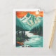 Experience the tranquil beauty of nature with this picturesque art postcard featuring a gentle river stream winding through lush greenery, framed by majestic mountains in the background. The serene scene captures the essence of the great outdoors, making it a perfect addition to your stationery collection or a thoughtful way to share your love of nature with others. Ideal for outdoor enthusiasts, travelers, and art lovers.