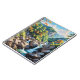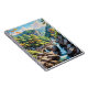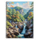 This stunning image captures a serene mountain landscape featuring a cascading waterfall flowing through a rocky terrain. The lush green forest, dotted with trees displaying autumn hues, creates a vibrant contrast against the clear blue sky. The scene is framed by majestic mountains in the background, adding depth and grandeur to the composition. This picturesque setting is perfect for nature enthusiasts and those seeking tranquillity and inspiration from the great outdoors.