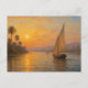 Experience the tranquil beauty of ancient Egypt with this captivating postcard featuring a peaceful Nile River scene at golden hour. This museum-quality design showcases a traditional sailboat gliding through calm waters with palm trees creating perfect silhouettes against the warm sunset sky, capturing the serene essence of Egypt's legendary river.