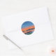Serene Orange Lake Sunset Dock Scene Classic Round Sticker