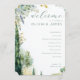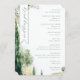 This wedding program features a vertical layout with elegant botanical illustrations framing the text, creating a romantic and serene atmosphere. The colour palette includes soft pastels like light greens, yellows, and muted blues, achieved through a watercolor art technique that adds a delicate touch. The design combines flowing script typography for the welcoming message with clean sans-serif fonts for the ceremony details, ensuring readability while maintaining an airy feel. Perfect for nature-inspired weddings, this program captures the essence of tranquillity and celebration, making it ideal for couples looking to add a touch of elegance to their special day.