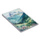 Immerse yourself in the tranquil beauty of nature with this spiral notebook featuring a stunning watercolor painting. The artwork showcases majestic, snow-capped mountains towering over lush green valleys dotted with blooming flowers. The cool colour palette and soft lighting create a peaceful and serene atmosphere, making it the perfect companion for your thoughts, sketches, and notes.