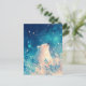 This ethereal postcard features a serene white polar bear gazing upward with a blissful expression, nestled within a magical sanctuary. The artwork is rendered in a dreamlike watercolor style, utilizing a deep and luminous palette of indigo, turquoise, and soft golden light. Delicate blue leaves and sprays of tiny orange-tinted blossoms surround the bear, while shimmering light orbs and soft white speckles create a sense of cosmic wonder. With its peaceful vibe and soft, painterly textures, this piece captures a moment of pure natural harmony. This postcard is a perfect choice for sending a gentle hello, a nature-inspired birthday greeting, or a heartwarming note to any animal lover.
