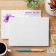 This elegant envelope features a simple yet sophisticated design with two vibrant purple flowers on the left side, rendered in shades of lavender and violet. The clean white background enhances the floral motif, while the right side showcases bold, serif typography for a personalized touch. Perfect for formal occasions, this design exudes serenity and sophistication, making it ideal for invitations or special correspondence.